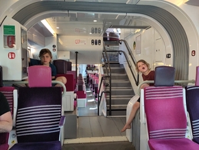 Pause Jocteur oblige, nous déjeunons sur l’île barbe et décidons de prendre le train jusque Vienne. C’est l’avantage de dormir chez des cyclistes, ils connaissent les itinéraires et peuvent nous conseiller. Le couloir de la chimie ne sera donc pas pour nous !