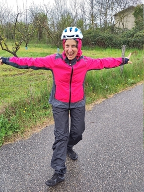 La combinaison semble bien mieux convenir à Lucie et c’est plus sereins que nous atteignons la Drôme… et la pluie. L’occasion rêvée pour tester nos habits de pluie, youpy !