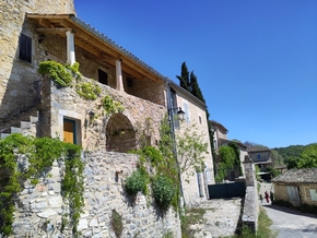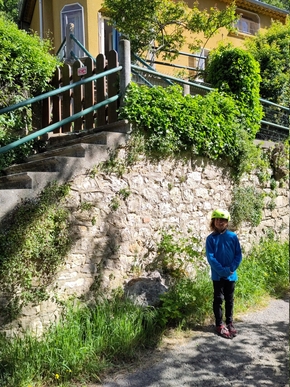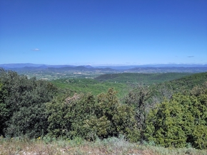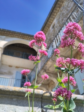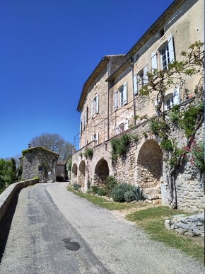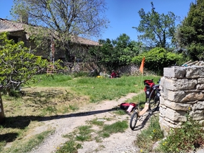 Sur le plateau, le mistral souffle et nous pousse. Nous passons dans un hameau avec des demeures magnifiques et décidons de nous y arrêter pour la pause déjeuner. Nous y croisons Yves qui nous propose de nous arrêter dans son jardin pour la pause déjeuner, et même pour la nuit si nous le souhaitons. Les enfants veulent absolument rester et il flotte ici comme un air d’Italie…