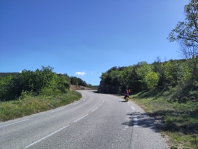 Bien remontés, nous nous lançons dans l’ascension de la bonne côte de 5km à 5% que nous avons laissée hier. Ça grimpe, mais on tient le coup. C’est long, mais on avance. Et nous ne sommes pas peu fiers lorsque nous arrivons en haut !