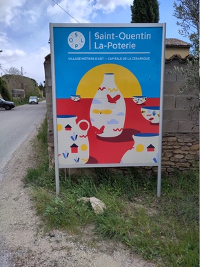 Le vent souffle toujours, mais nous sommes bien mieux abrités sur l’itinéraire conseillé. Nous arrivons vaillamment à Saint-Quentin-la-Poterie où nous attendent Daniel et Christine contactés sur warmshowers.