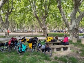Nous laissons l’appartement de Pascal et Marie qui se situe en bordure de la Via Rhona. Nous reprenons donc cet itinéraire que nous avons laissé avant Valence lorsque le vent du sud et les orages nous avaient repoussés.