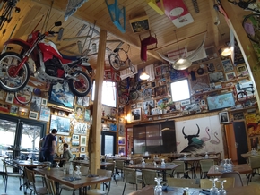 Celui-ci est vraiment très chaleureux avec une décoration hors normes qui nous plait beaucoup. Nous passerons donc une soirée détente (et onéreuse) et nous en avons bien besoin. Voyager en France, c’est cher, surtout lorsque l’on est dans des endroits touristiques. Le camping des bois flottés est en tout cas fort agréable.