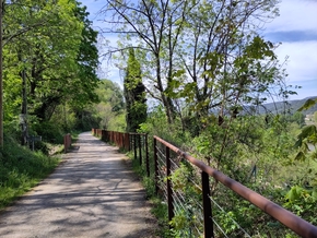 Nous avançons tranquillement entre les méandres splendides de l’Eyrieux et les ouvrages d’art qui les surplombent.