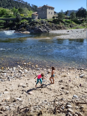 Les enfants ont très envie de se baigner, nous posons la tente sur une plage municipale à Saint-Fortunat-sur-Eyrieux. L’endroit est désert. Nous avons tout fait pour démarrer notre remontée avant le weekend et les vacances !