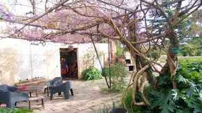 Le jardin a été créé par le précédent propriétaire qui est apiculteur et l’a conçu pour que les abeilles aient à manger tout le temps. Des fleurs partout.