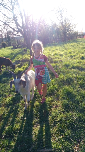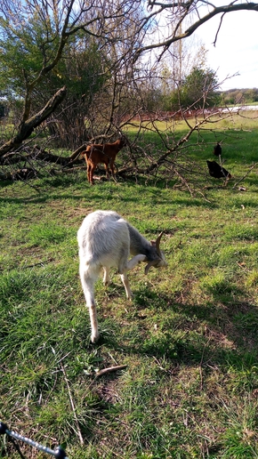 Christine et Thomas ont une belle demeure et un jardin à faire rêver les permaculteurs beaujolais que nous sommes. Déjà, un terrain plat ! Une maison de plain pied qui donne sur le jardin. Et un potager / poulailler partagé où se trouvent une chèvre et un bouc adorables.