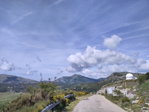 Nous déchargeons le mini-bus et remontons les vélos, vérifions les freins et que tout va bien. Un dernier petit coucou et c’est parti pour la descente depuis l’observatoire jusqu’au plateau. Impressionnant. Nous sommes à la montagne, c’est beau, ça sent bon, c’est grand et ça fait du bien de pédaler dans un tel environnement.
