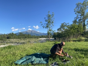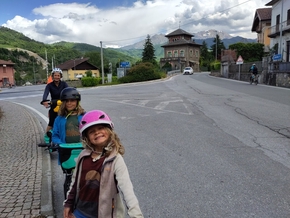 Arrivés à Cuneo, on ne résiste pas à l’envie de manger une glace. Une glace italienne ! Nous cherchons un endroit où poser la tente et nous nous dirigeons vers le parc fluvial nous finissons par trouver un endroit à l’écart qui nous accueillera pour la nuit avec le plaisir de pouvoir jouer et se laver dans la rivière.