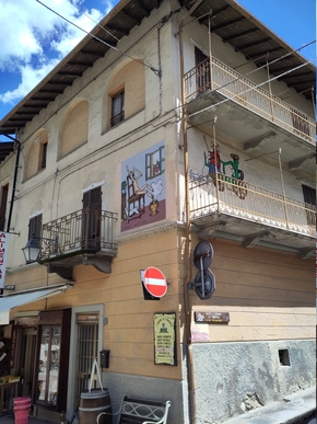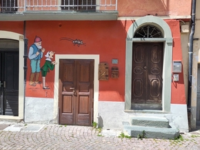 Après toutes ces étapes qui nous ont fait voyager avec les voitures très proches, le bruit constant et la grande concentration que demande les traversées des villes ou les routes très usitées, nous avons beaucoup de difficulté a quitter la montagne. Ce matin nous traînons, nous traînons et l’envie n’est vraiment pas là. Nous quittons cependant la montagne de Limone pour descendre vers Cuneo. Nous traversons ainsi le village de Vernante où sont peints sur les murs du village dans tous les recoins des peintures représentant Pinocchio.