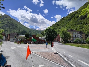 Le lendemain, nous avançons à la coule. Depuis Limone, nous n’avons quasiment fait que descendre. Cuneo a entamé le début d’une plaine agricole dans laquelle nous évoluons au rythme des canaux d’irrigation. Ça ressemble à du plat, mais c’est du plat qui descend. Et notre allure s’en ressent, nous avançons sans trop fournir d’effort et c’est très plaisant. Cela nous laisse le loisir d’observer la campagne et les villages. Il m’aura fallu pas mal de temps avant de me rendre compte qu’il n’y a pas de fils électriques apparents dans les villages. Ça fait du bien.