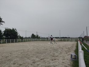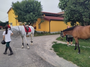 La ferme est grande et plusieurs familles y vivent. Nous pouvons notamment admirer Giada, une jeune fille, qui monte un très beau cheval dans un enclos. Nous discutons un peu avec sa mère, puis sa grand-mère et son père. Giada fait des concours de saut d’obstacles. Mais ce soir, le cheval est écrasé par la chaleur et n’est clairement pas motivé.