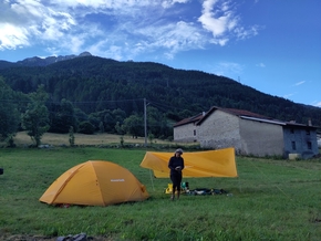 Lorsque nous posons la tente dans un beau pré, la bare des 2000km est à peine dépassée au compteur kilométrique.