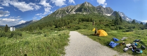 Demain ce sera la dernière étape du col. 15 kms de montée non stop et Passo Tonale au bout. Je crains toujours que nous ayons du mal à aller au bout mais nous avons tout notre temps pour y arriver. Après une nuit dans un parc fort sympathique c’est donc parti pour cette dernière étape. Et ça monte raide tout de suite avec un début autour de 7%.