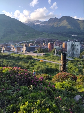 La route nous porte et nous sommes fascinés de voir les télésièges et les petits villages de montagne que nous traversons ! Ça y est nous sommes belle et bien suffisamment montés pour être face à cela. Il y a quelque chose d’émouvant à aller au-delà de ce que l’on pensait impossible, plus qu’une satisfaction, un sentiment d’émerveillement pour cet outil qu’est notre corps. Les enfants meurent d’envie de monter encore plus haut pour trouver la neige et lorsqu’ils voient les télésièges ils jubilent !