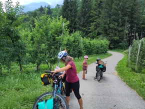 La culture a complètement changé et nous sommes désormais dans les pommiers. De grands vergers partout. Mais la forêt est bien présente et des panneaux annoncent la proximité de l’ours à l’entrée des chemins.