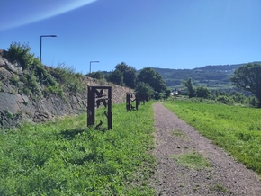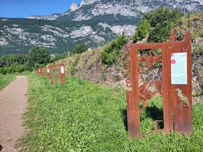 Nous profitons d’une éclaircie pour repartir et atteignons Lavis, juste avant Trento. Nous posons la tente pas loin d’un héliport, mais surtout à côté de superbes panneaux qui décrivent les oiseaux du coin. Ils sont réalisés en découpe sur métal, un travail remarquable et qui me plait beaucoup.