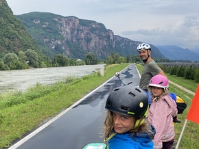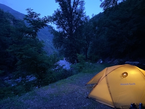Un peu plus tard, le propriétaire des lieux apparaît accompagné d’amis, une rencontre fort sympathique ! Eux sont habitués à descendre, en canoë, les fleuves de la source à la mer, en toute autonomie. Il nous proposent de revenir ici la nuit prochaine si nous voulons profiter un peu plus de la ville de Bolzano. Merci !