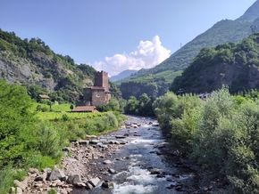 Alors que nous avions repéré un lieu où poser la tente nous nous rendons compte, en arrivant déjà bien tardivement, que l’accès ne peut se faire avec nos vélos. Pour monter, la route a été difficile et nous sommes bien fatigués. Le moral de chacun est mis un peu à rude épreuve… beaucoup, car nous avons dû gérer ces soucis techniques de notre côté et de celui des enfants, l’attente a été longue et ils ont fini par tourner en rond. Le temps s’est étiré comme une boucle sans fin… Ce soir cela fait trop.