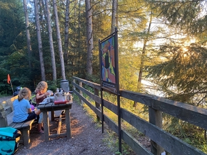 Il est 18h30. Nous sommes au bar. Nous étudions la carte pour voir où dormir et nous nous rendons compte que nous allons finalement faire les 5 kms qui restent jusqu’au lac car avant, à moins d’une belle surprise, il n’y a rien pour nous.