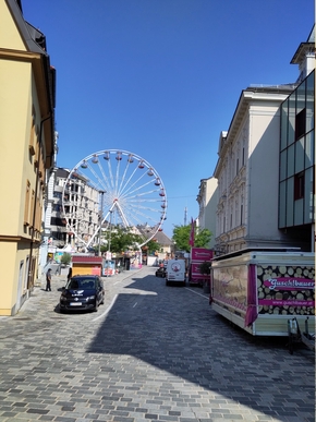Nous sommes partis un peu tard ce matin, nous avions du mal à quitter le lieu et la chaleur nous rattrape. Heureusement pour nous la route est belle et en partie ombragée. Arrivés à Villach nous en profitons pour observer les habitants en habits traditionnels pour certains car nous sommes en pleine fête de Kirchtag. Cette foire annuelle fait venir jusqu’à 500000 personnes dans cette ville de 40000 habitants.