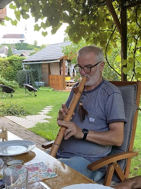 Boum, le jeu de mot en langue morte ! Ces vins sont accompagnés de chansons. Lojze fait partie du plus vieux chœur d’hommes de Slovénie. Il a fêté ses 150 ans l’an dernier. Alors nous sortons notre ukulele et chantons quelques chansons de temps en temps. C’est un plaisir de pouvoir partager cela. Au moment de se quitter, Lojze m’offrira une partition qu’il chante avec son chœur : Quand il est mort le poète de Gilbert Bécaud, en français et en slovène. Bien sûr que nous allons la reprendre !