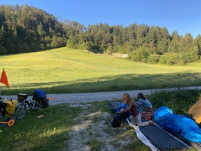 Alors certes, la roue est réparée, mais partir à midi pour une étape de côte un peu sérieuse sous un soleil de plomb, ce n’est pas optimal. Nous nous arrêtons très vite. Repas, rivière, tout ça.