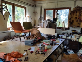 Avant de partir, nous avons droit à une petite visite de l’atelier de tapissier. Il a commencé à travailler avec son père à 15 ans et nous montre les outils ainsi que les photos de son travail. Des outils simples, robustes pour un métier qu’il fait avec passion. Nous lui parlons de tout le travail qui l’attend dans notre propre maison et ça nous fait tous bien rire.
