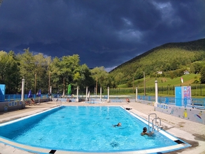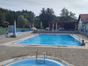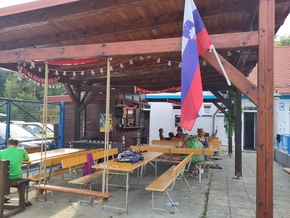 Nous partons en direction de Zreče. Božo nous a indiqué une piscine très agréable à Frankolovo qui permet de couper la route en deux. Parfait pour nous ça. Lorsque nous y arrivons, nous sommes accueillis très chaleureusement par les personnes présentes qui sont sidérées que nous arrivions de France avec nos vélos. La piscine est communale et gérée par l’association des jeunes du village.