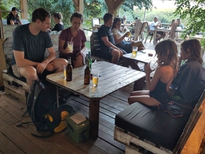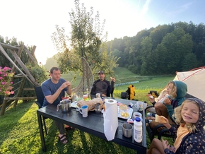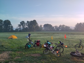 Joža, puisque c’est lui qui porte le gilet jaune, nous a accueilli avec la seule phrase qu’il maîtrise en français : “Je voudrais acheter quelque chose”. Il nous invite à planter la tente dans son jardin à quelques centaines de mètres de là. Il partage la ferme de ses parents retraités. Demain, lui, sa compagne Nena et leurs enfants reprennent l’école. Ça n’empêche pas Joža d’être de la fête et de venir papoter avec nous. Il est prof de philo et d’informatique. Nous avons forcément des choses à nous raconter.