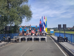 Le soir approchant, nous visons un village qui nous semble convenir pour trouver un lieu de bivouac. En arrivant, nous entendons au loin de la musique folklorique. Une grande tablée en contrebas sous des barnums, des buvettes éphémères, des gens attablés et discutant joyeusement. Jusque-là, tout ressemble à ce qui se passe chez nous… Une scène est dressée avec le groupe qui joue. La scène se situe pile sur le pont qui fait frontière avec la Croatie. Ça, ce n’est pas commun. Nous nous approchons encore et discutons avec le premier gilet jaune croisé. C’est pour fêter l’amitié entre les deux villages qui se trouvent de part et d’autre de la frontière. Vous pouvez aller boire une bière et manger des saucisses, les saucisses sont gratuites. PARDON ?