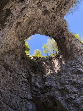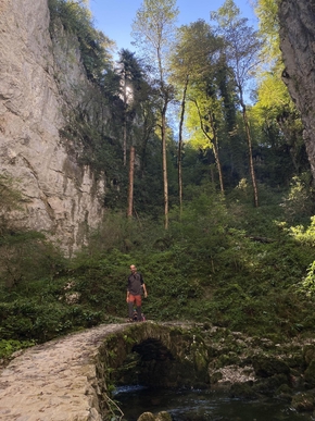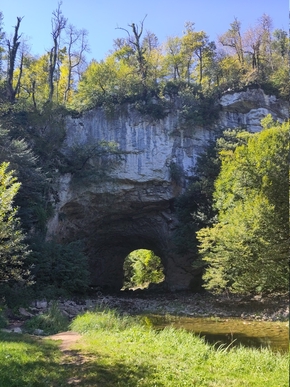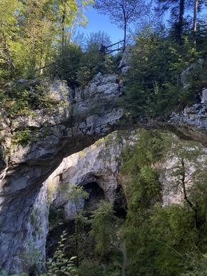 Nous poursuivons la route pour déjeuner au pied du grand pont naturel (Veliki naravni most), majestueux. L’apparition de ces ponts est due à l’effondrement partiel de grottes dans lesquelles coule la rivière. Il ne reste alors que des petites parties de grottes qui forment ces ponts. Le reste devient un canyon.