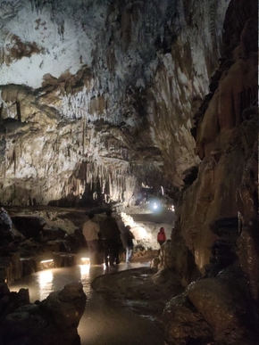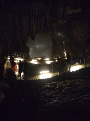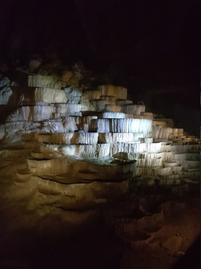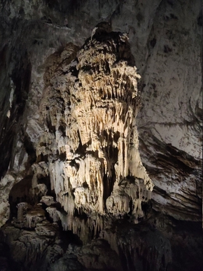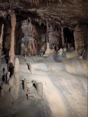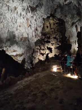 La visite est subjuguante. Les concrétions de calcite sont magnifiques, stalactites, stalagmites, orgues (sur lesquelles sont venus jouer de nombreux musiciens manifestement, en tapant sur les tubes de calcite, une note est émise, différente pour chaque tube), voilages, colonnes, gours, tout est sublime et exubérant. La guide va trop vite et le groupe est trop grand pour que nous comprenions ce qu’elle raconte, nous aurions juste envie de rester là des heures à admirer ces merveilles.