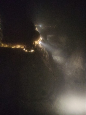 Nous arrivons bien à l’heure sur le lieu de la grotte. Nous sommes à l’abris et pouvons nous changer avec des vêtements secs.