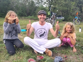 Matija est emballé par notre projet et nous aide à trouver un lieu pour poser la tente. Nous nous installons dans un pré. Je vais chercher de l’eau au petit hameau tout proche. Pendant ce temps, il va chercher des pizzas qu’il nous offre avec joie. Les meilleurs du coin parait-il !