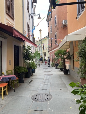 Pendant longtemps, Izola a été une île. Sa proximité avec l’Italie dont elle faisait partie se ressent encore dans l’architecture de certains bâtiments, le cœur de la vieille ville a gardé des accents italiens avec ses ruelles colorées et le linge qui pend aux fenêtres.