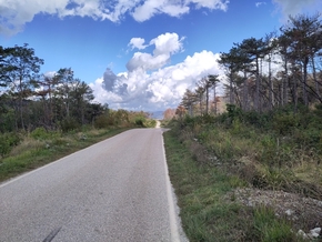 Nous reprenons notre chemin sur le plateau karstique et circulons entre les petits monts qui le peuplent. Le plateau n’est pas plat du tout. Nous voyons des indications qui nous font comprendre qu’un rally de voiture va avoir lieu ici. Bien contents qu’il ne soit pas en cours au moment où nous y sommes !