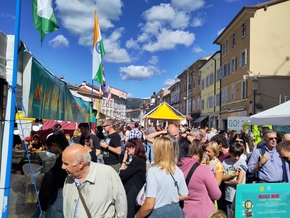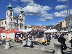 Il me reste du travail à réaliser et j’espère pouvoir le finir aujourd’hui dans le bar de l’hôtel pendant qu’Estelle emmènera les enfants au festival de gastronomie sans frontière qui se passe dans la partie italienne de la ville. Mais mon plan tombe à moitié à l’eau car le bar ferme à 12h ce dimanche. Je finirai donc mon travail dans un café à côté du festival qui accueille beaucoup trop de monde dans les rues de Gorizia pour que nous nous y sentions bien.