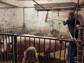 Nous resterons le lendemain. Un petit aller-retour presque inutile dans un magasin de vélo avec Andrej pour voir s’ils n’ont pas une idée pour les sacoches. Et surtout faire sécher à nouveau les affaires. Les enfants sont ravis ! Ils passent beaucoup de temps avec les animaux, aident à nettoyer, à nourrir.