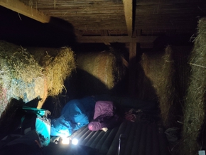 En arrivant chez lui, Jozef nous présente son fils Bno et nous montre la grange à foin en nous disant que nous pouvons même dormir dans le foin. Allez ! Le vent est très fort dehors mais nous dormons rudement bien dans notre cabane en foin et l’odeur… hmmmmm ! Jozef nous offre aussi des noisettes, des œufs, le plaisir d’une douche et même une petite goutte de Jägermeister fait maison pour moi. Peu de mots mais de beaux moments de partage.