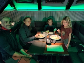Pendant mon rendez-vous, Estelle et les enfants trouvent un café totalement hors normes. Nous mangerons donc au Bunker, un café-restaurant au design post-apocalyptique industriel. Nous y passons un très bon moment et nous régalons. Cela nous permet de discuter effondrement avec les enfants, on sait mettre l’ambiance pour les repas, nous.