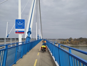Ce matin nous quittons Nyul, traversons Győr et avançons à bonne allure car Marc a un rendez-vous professionnel important en début d’après midi. Il nous faut donc rouler suffisamment pour avancer et avoir le temps de trouver l’endroit adéquat pour qu’il puisse travailler. Nous visons les bords du Danube et sommes ravis d’y arriver.