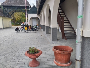 Nous passons donc côté Slovaque pour quelques kms. Puis retour côté Hongrois. Marc est bien fatigué aujourd’hui et les enfants ont également envie de s’arrêter, alors dès que l’on aperçoit un camping en bord de route c’est l’occasion. Tout est ouvert et nous comprenons assez vite qu’il y a peu il devait être sous l’eau au moins d'1m50. Nous attendons un peu et une voiture arrive. On nous explique que c’est fermé et qu’ils ne sont pas dans la capacité de nous recevoir mais qu’a une bonne trentaine de kms nous devrions trouver un endroit où nous poser.