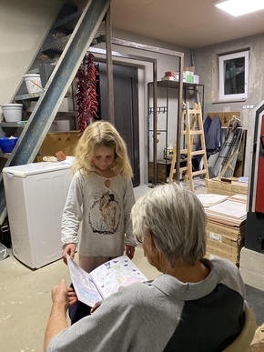 Lucie aime beaucoup faire des trouvailles sur la route et a le talent de savoir les utiliser ensuite, en les décorant ou en mettant un petit mot pour remercier les gens de leur accueil. Léon trouve cela incroyable car pour lui “c’est difficile de donner quelque chose que j’ai pris pour moi parce que je trouve ça beau… Je ne sais du tout faire ça moi”. Cela nous permet d’évoquer les compétences de chacun et la chance que l’on a de pouvoir s’appuyer sur les autres pour développer celles que l’on n’a pas. Grandir à deux ou plus et savoir voir les talents de l’autre comme une chance est tout un apprentissage. Lorsque cela est présent on en mesure toute la richesse !