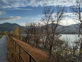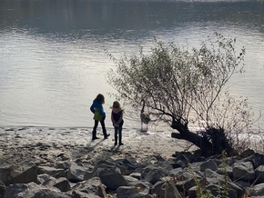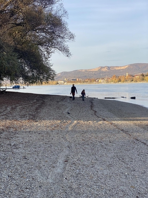 Il y a surtout la marque de l’inondation du mois dernier sur les buissons. Une ligne de démarcation horizontale. C’est impressionnant. La largeur du Danube ici et la hauteur de la crue nous donne à réfléchir sur la violence du phénomène.