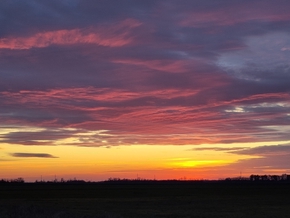 Tout est si plat, aussi plat qu’un plat. Les parties forestières que nous croisons sont plutôt des taillis. Aussi, nous demandons asile à un fermier qui nous indique le pré en face pour que nous puissions y poser la tente. Nickel et tout juste avant la nuit.