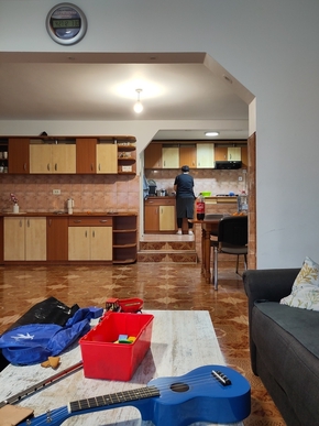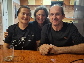 Sa femme Ana nous accueille et nous montre nos chambres. Nous rencontrons aussi Andrea, une de leur filles et quelques-uns de leurs petits enfants. C’est qu’Anton et Ana ont une grande famille de 8 enfants et 23 petits-enfants. Leur accueil est incroyable. Ana s’active en tous sens pour nous préparer à manger et je peine à l’aider… Elle veut que nous nous reposions ! Nous nous installons donc et passons avec eux une excellente soirée. Nous évoquons comme nous le pouvons avec l’aide magique des traducteurs parfois, le travail, la vie, la foi.