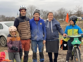 Nous devons vraiment reprendre la route maintenant pour ne pas arriver à la nuit et trouver où poser notre tente. Anton ne pouvant rentrer pour midi, Ana nous accompagne, à vélo, jusqu’au chantier où il travaille pour que nous puissions le saluer !