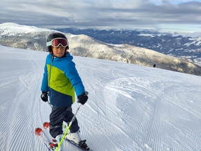 Lucie se lance aussi en 3 jours sur les pistes bleues et se régale, elle chante, elle danse presque et skie tout en fluidité en se faisant plaisir, en allant de plus en plus vite. Elle est radieuse !