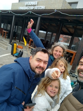 Nous partons car nous avons trouvé un lieu pour passer le reste de l’hiver. Il s’agit d’une ferme en Bulgarie, à côté de Varna, au bord de la mer Noire. Mais pour rejoindre la Bulgarie, nous devons reprendre nos vélos pour quelques étapes. Si tout va bien, une fois de l’autre côté du Danube, nous pourrons mettre nos vélos dans le train et rejoindre Varna… Pour ces étapes en vélo, nous avons décidé de dormir au chaud tous les soirs. Nous sentons clairement que la tente, ça ferait trop pour les enfants. La pause ski était bonne mais ils ont tous les deux vraiment besoin d’une plus longue pause hivernale. C’est ainsi que nous dormons ce soir à l’hôtel, à Caracal.
